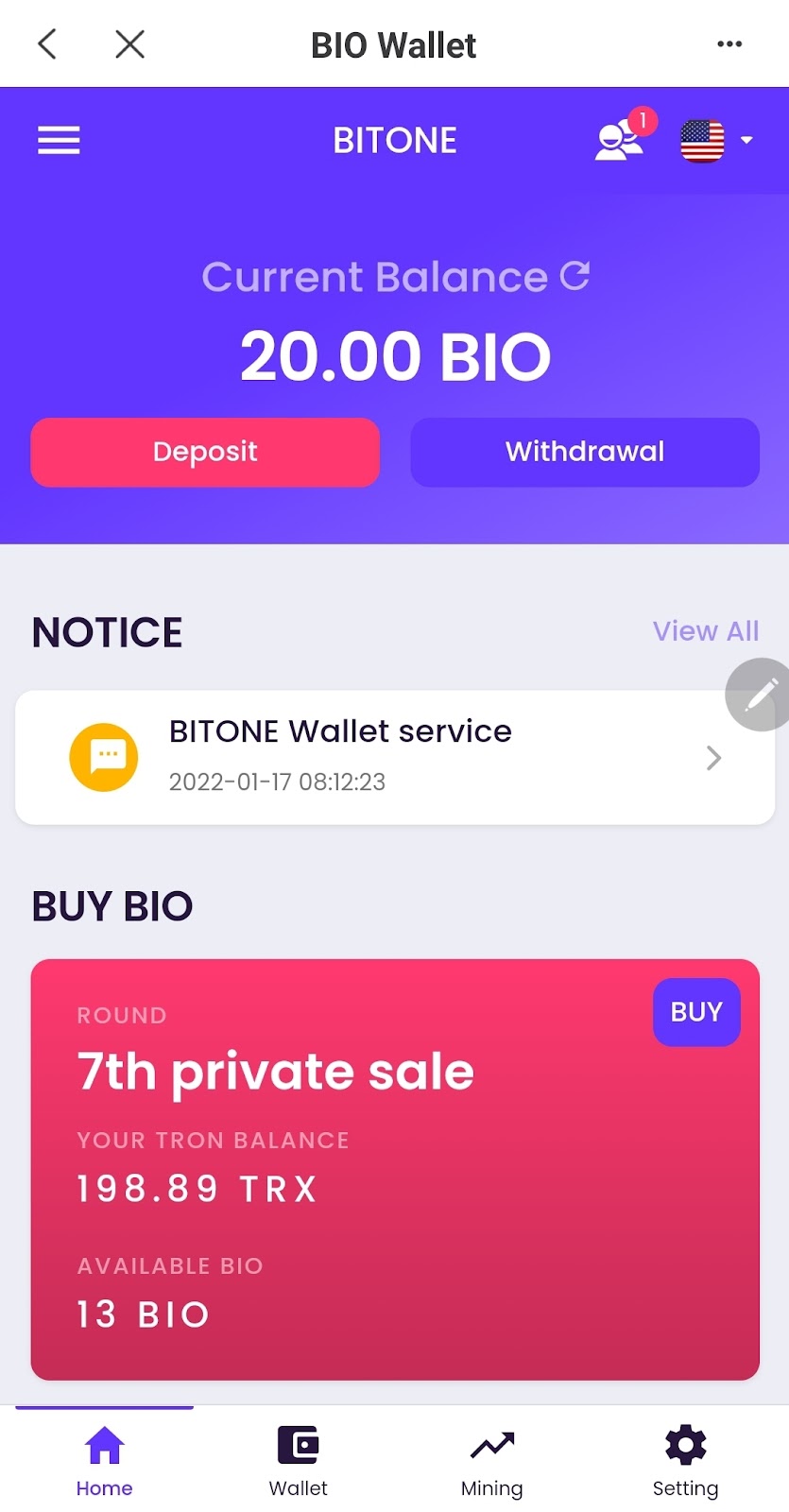 If you sign up for BITONE Wallet, you can get 10 BIO for free.